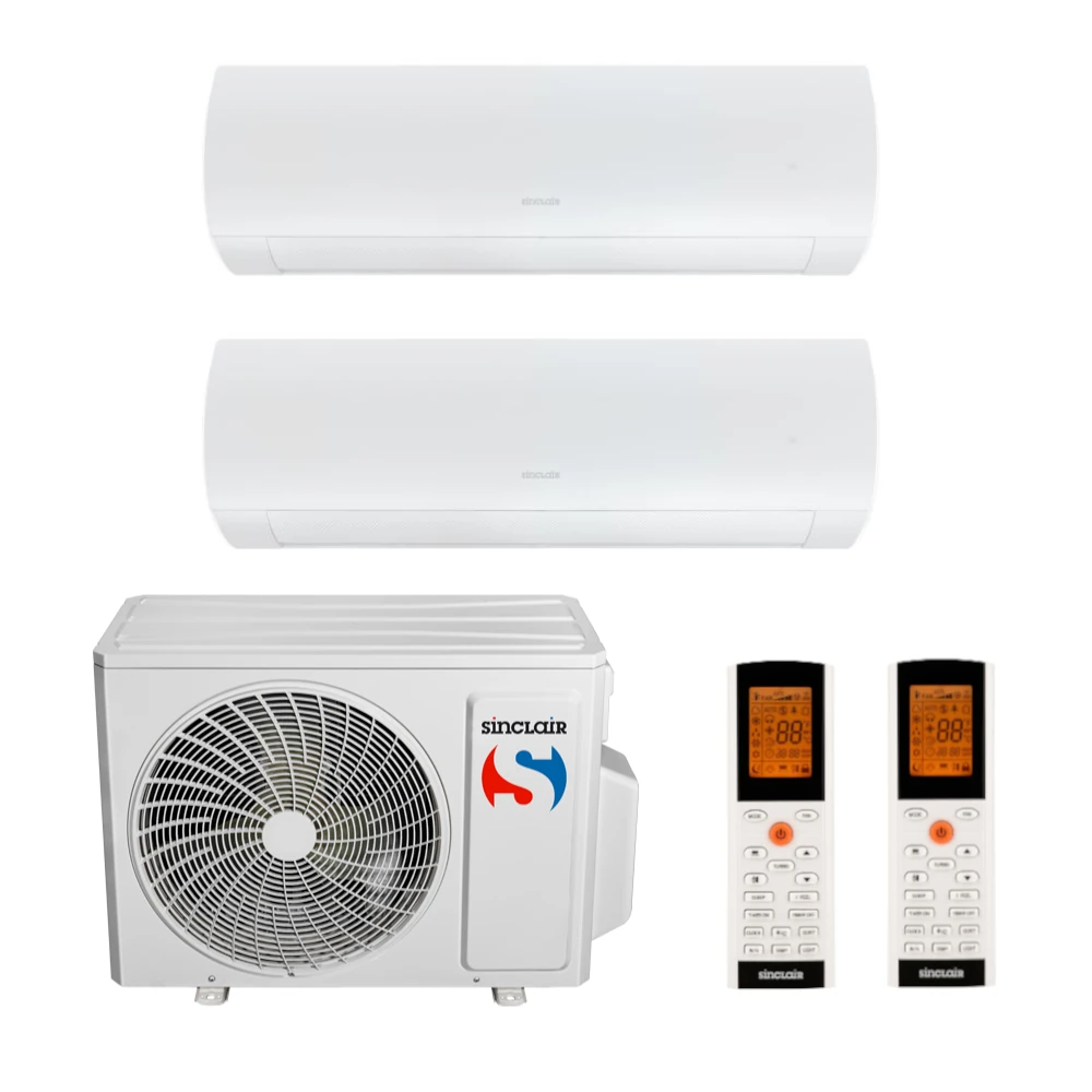 Multi splitová nástěnná klimatizace značky Sinclair, dvě vnitřní jednotky, model vyšší střední třídy Terrel 2,7 kW, energetická třída A++/A+, hlučnost vnitřní jednotky od 25 dB a venkovní jednotky 52 dB. Funkce: ovládání lamel do čtyř směrů, auto-restart, odvlhčování, zabudované WiFi ovládání, funkce I Feel, temperování 8°C. Invertorová technologie, úsporné chladivo R32, v zimě topí a v létě chladí. Cena je i s montáží (provádíme po celé ČR).