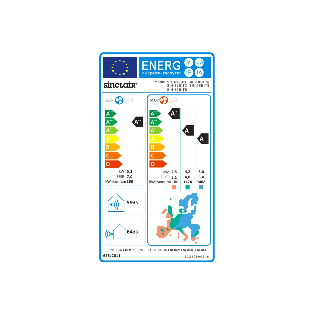 Splitová nástěnná klimatizace značky Sinclair, nový model roku 2021 vyšší třídy Terrel 5,2 kW, energetická třída A++/A+, hlučnost vnitřní jednotky 30 dB a venkovní jednotky 57 dB. Funkce: zabudované WiFi ovládání, temperování na 8°C, 24 hodinový časovač, pohodlný spánek, funkce I feel, tichý režim, ovládání lamel svisle i vodorovně, auto-restart, odvlhčování. Invertorová technologie, úsporné chladivo R32, v zimě topí a v létě chladí. Možno zakoupit i s montáží (provádíme po celé ČR).