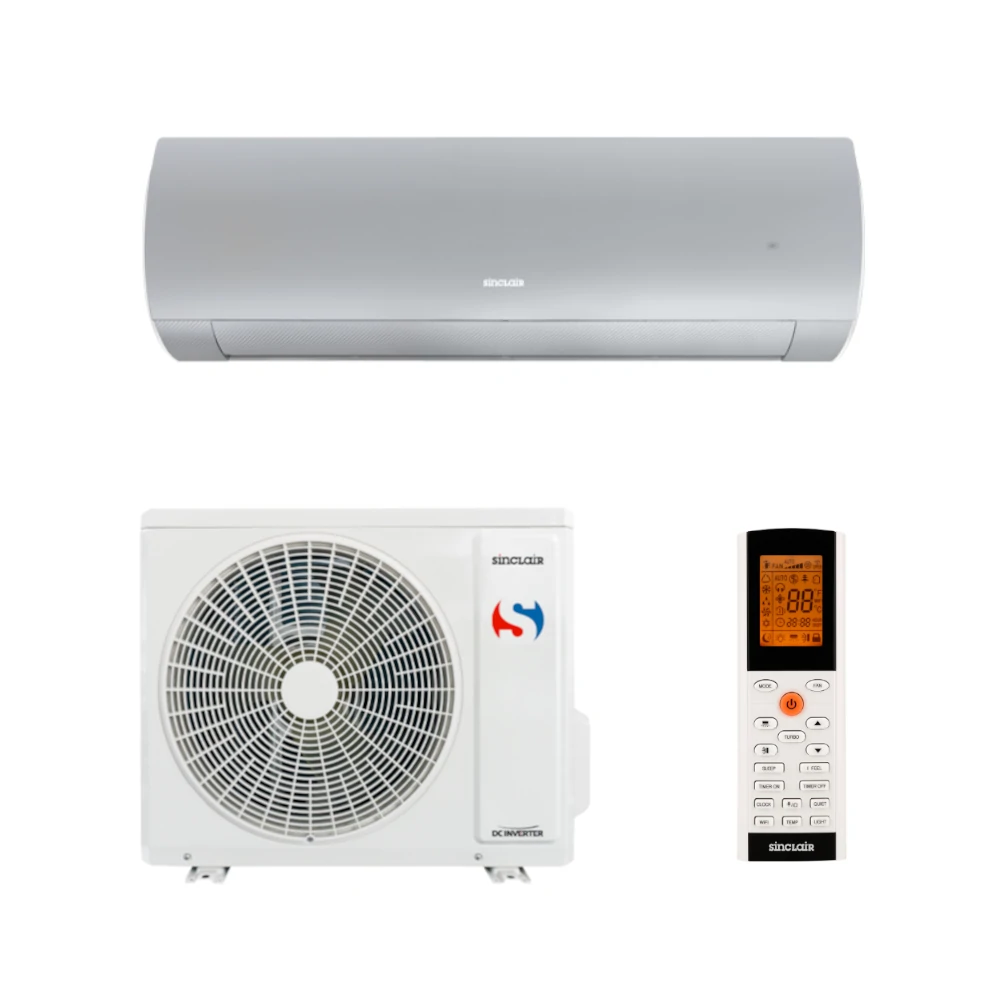 Splitová nástěnná klimatizace značky Sinclair, nový model roku 2021 vyšší třídy Terrel 7 kW, energetická třída A++/A+, hlučnost vnitřní jednotky 33 dB a venkovní jednotky 57 dB. Funkce: zabudované WiFi ovládání, temperování na 8°C, 24 hodinový časovač, pohodlný spánek, funkce I feel, tichý režim, ovládání lamel svisle i vodorovně, auto-restart, odvlhčování. Invertorová technologie, úsporné chladivo R32, v zimě topí a v létě chladí. Možno zakoupit i s montáží (provádíme po celé ČR).